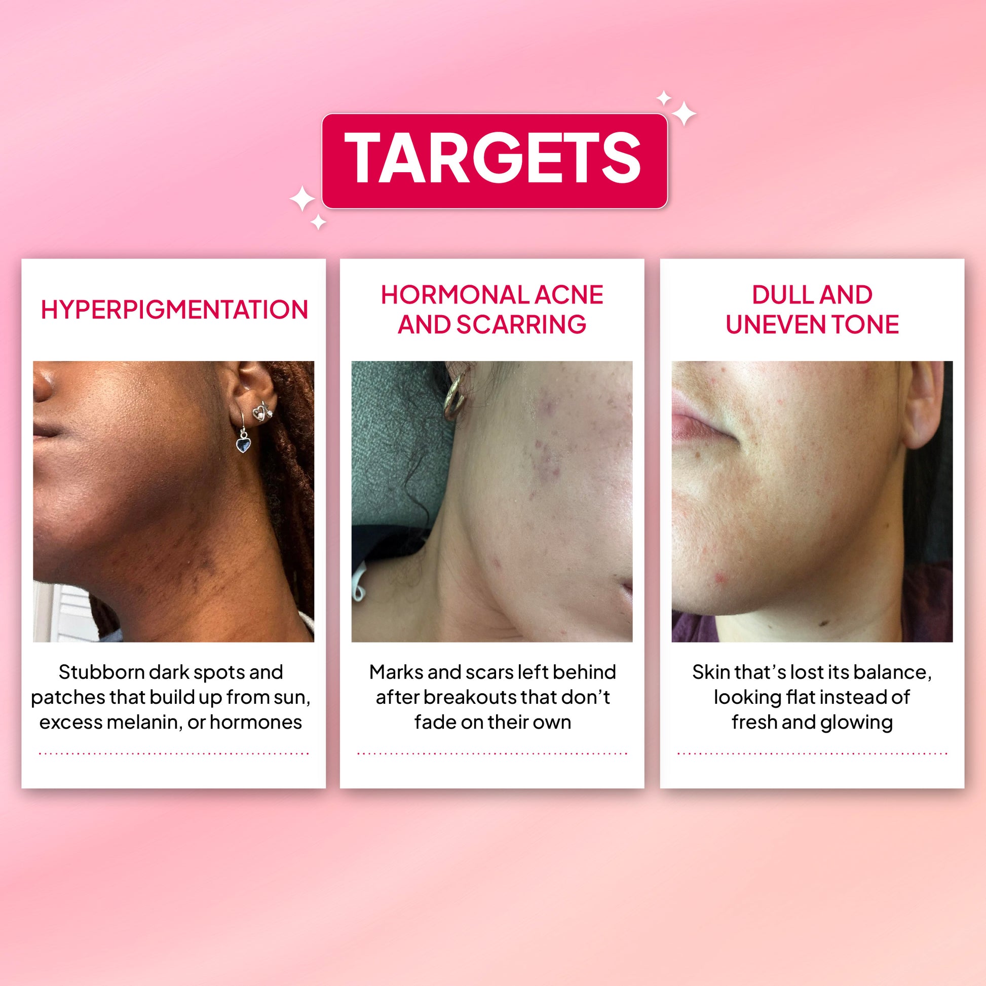 check_circle fades dark spots, acne scars, & melasma fast